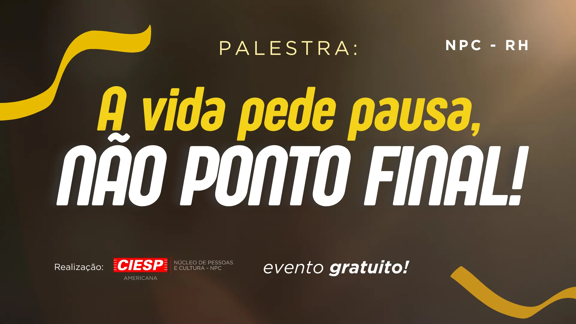 [NPC] Palestra "A vida pede pausa, não ponto final!"