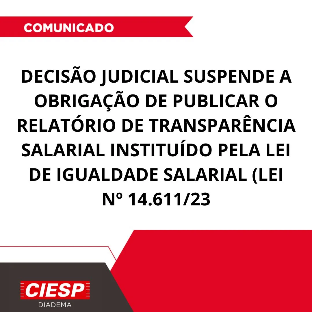 DECISÃO JUDICIAL SUSPENDE A OBRIGAÇÃO DE PUBLICAR O RELATÓRIO DE TRANSPARÊNCIA SALARIAL INSTITUÍDO PELA LEI DE IGUALDADE SALARIAL (LEI Nº 14.611/23 25 de agosto, 2025