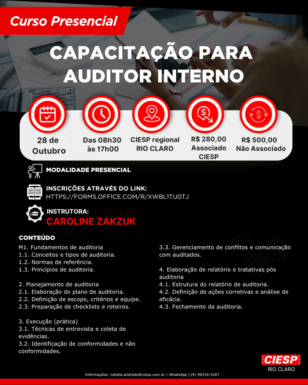CAPACITAÇÃO PARA AUDITOR INTERNO
