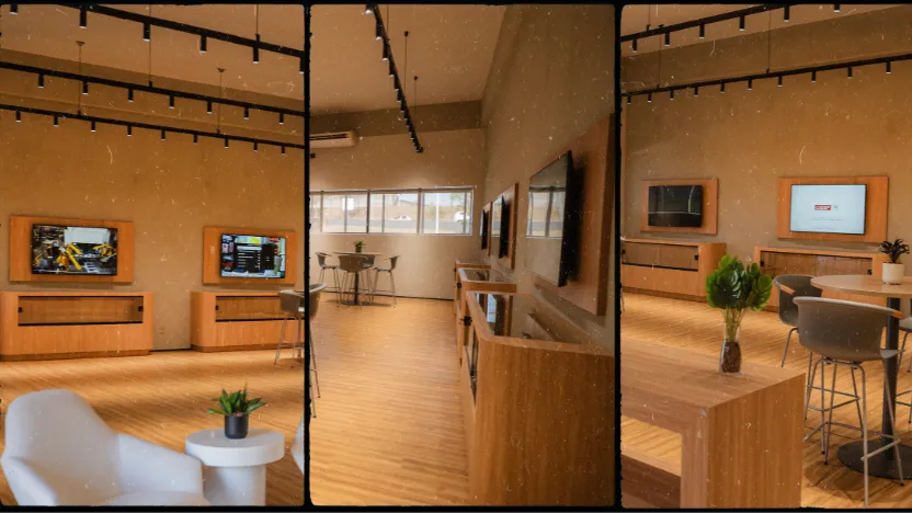 Recentemente modernizado, o local passa a contar com três TVs de 55’’, substituindo os antigos balcões expositores. Esse novo formato permite a apresentação de vídeos, artes institucionais e materiais digitais, proporcionando uma exposição mais dinâmica, atrativa e alinhada às tendências atuais de comunicação.
