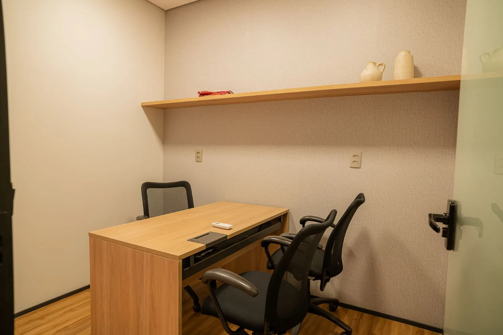 Espaço compacto e funcional para atendimentos rápidos ou atividades individuais, com capacidade para 2 a 3 pessoas e ar-condicionado.