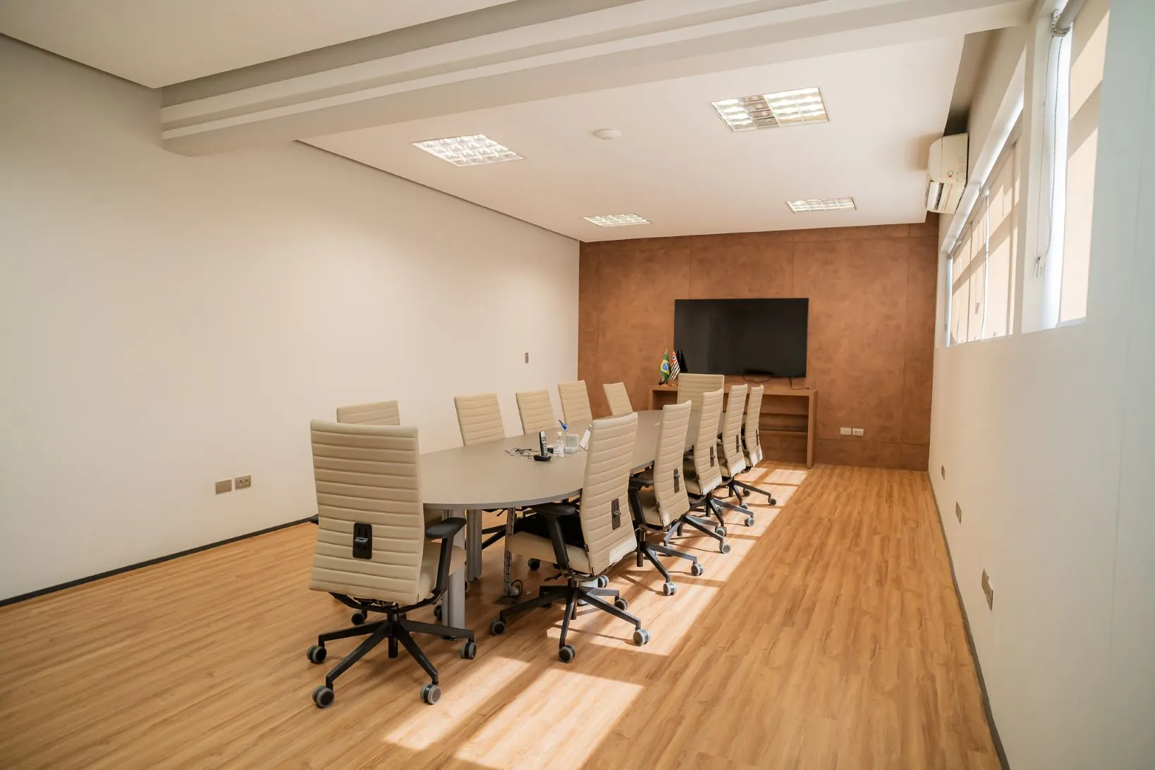 Ambiente reservado para encontros estratégicos, com capacidade para 12 pessoas.