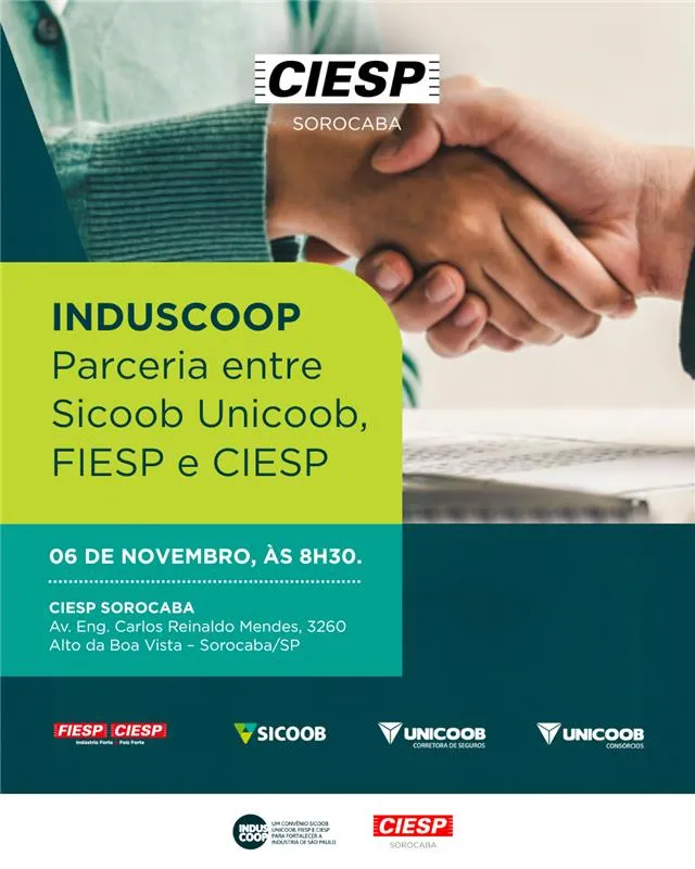No encontro também será apresentada a INDUSCOOP, cooperativa de crédito resultante de uma parceria entre Sicoob, Unicoob, FIESP e CIESP